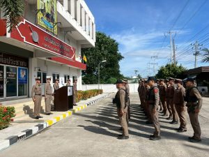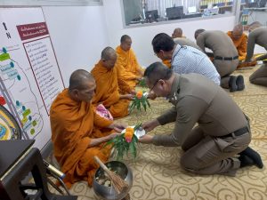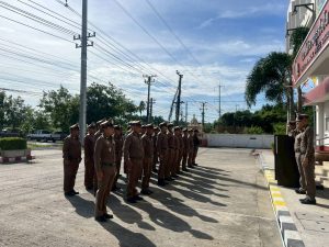 อ่านสารของ พล.ต.อ.กิตติ์รัฐ พันธุ์เพ็ชร์ ผบ.ตร. ร่วมกล่าวคำปฏิญาณตน และอุดมคติตำรวจ เพื่อเป็นข้าราชการตำรวจที่ดี มีความจงรักภัดีต่อชาติ ศาสนา พระมหากษัตริย์ และพิธีทำบุญทางศาสนา ถวายภัตตาหารเพล ณ สถานีตำรวจภูธรไชโย