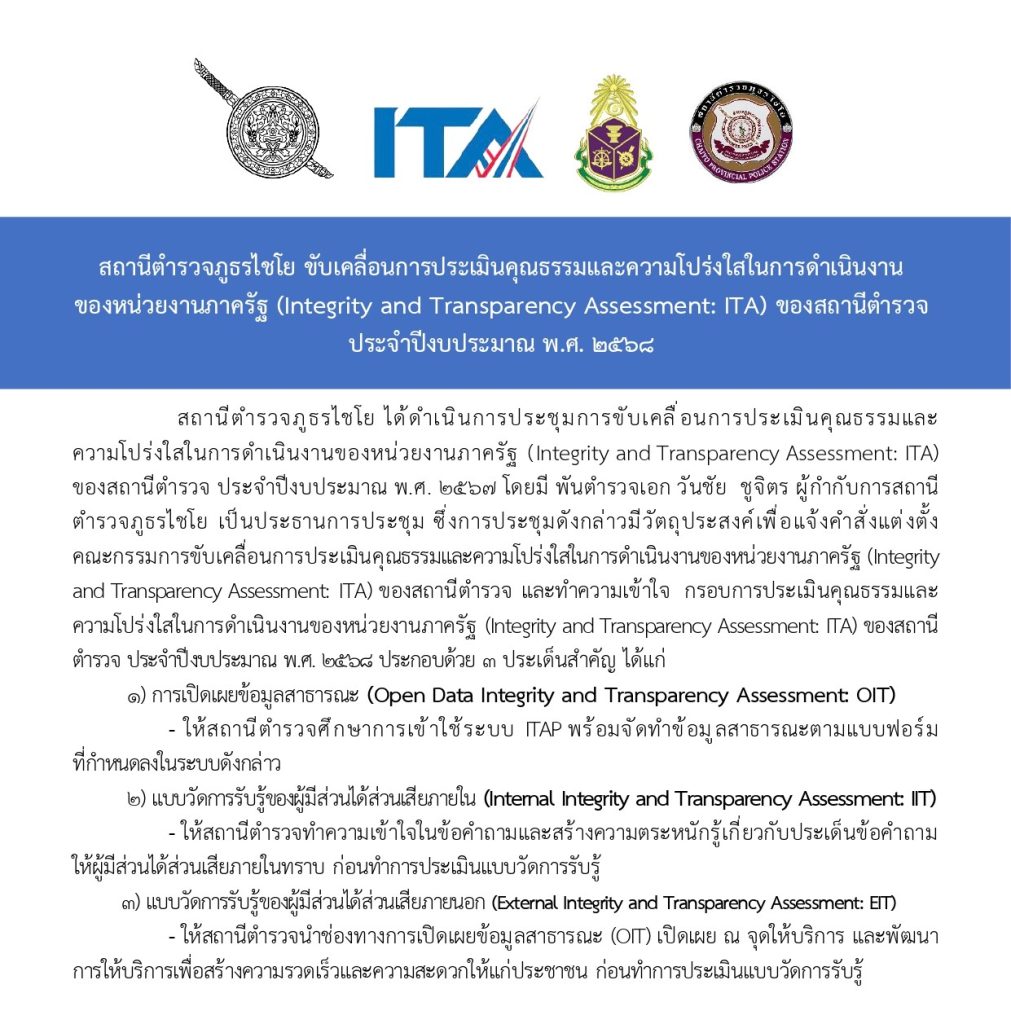 การประชาสัมพันธ์ขอมูลผลการดำเนินงานของหน่วยเรื่องการประเมิน ITA ปีงบประมาณ 68